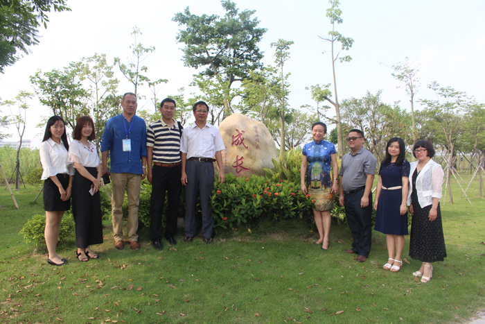 教育科学与技术学院领导班子在白云校区“成长”石前等待评估专家